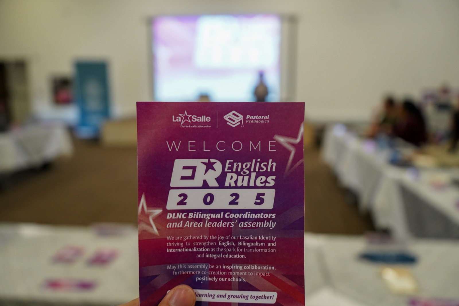 English Rules 2025 se desarrolló en De La Salle Casa de Encuentros, ubicada en Rionegro, Antioquia, un entorno propicio para la reflexión y el intercambio de saberes. Durante tres días, los participantes vivieron un proceso formativo que combinó sesiones académicas, actividades experienciales, espacios de diálogo y acompañamiento pedagógico.
